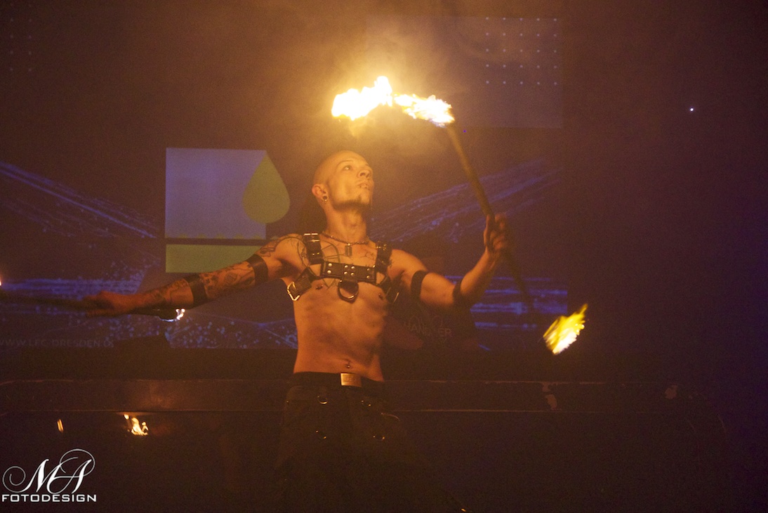 In addition, there were two extras that were not announced in advance: Those who wanted could have a souvenir photo taken by our party photographer. And as a big surprise, Dshini Ignis performed several fire shows in the club around midnight.